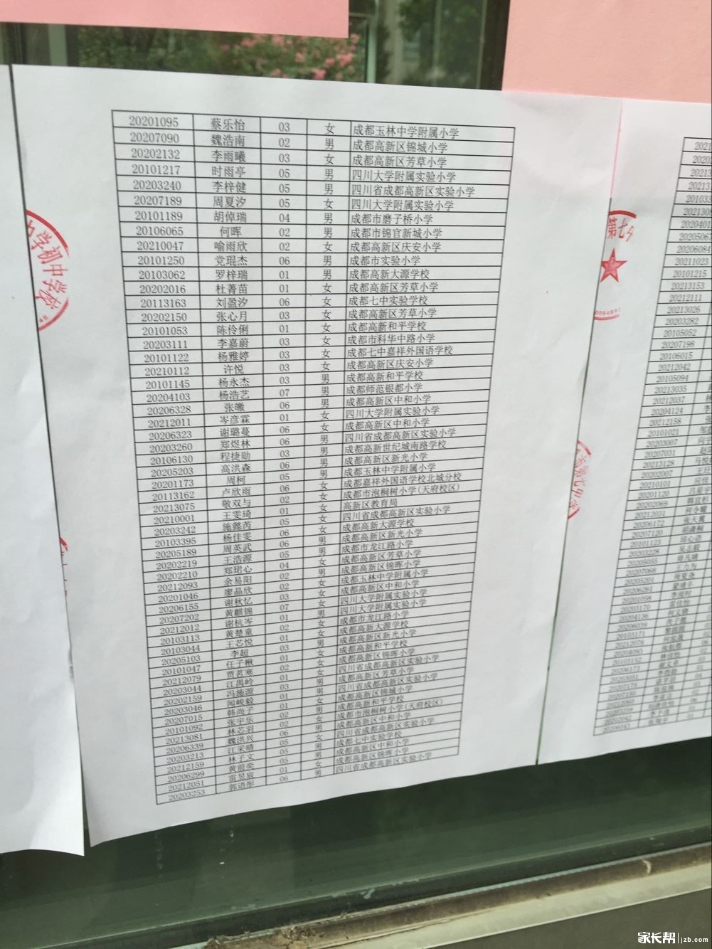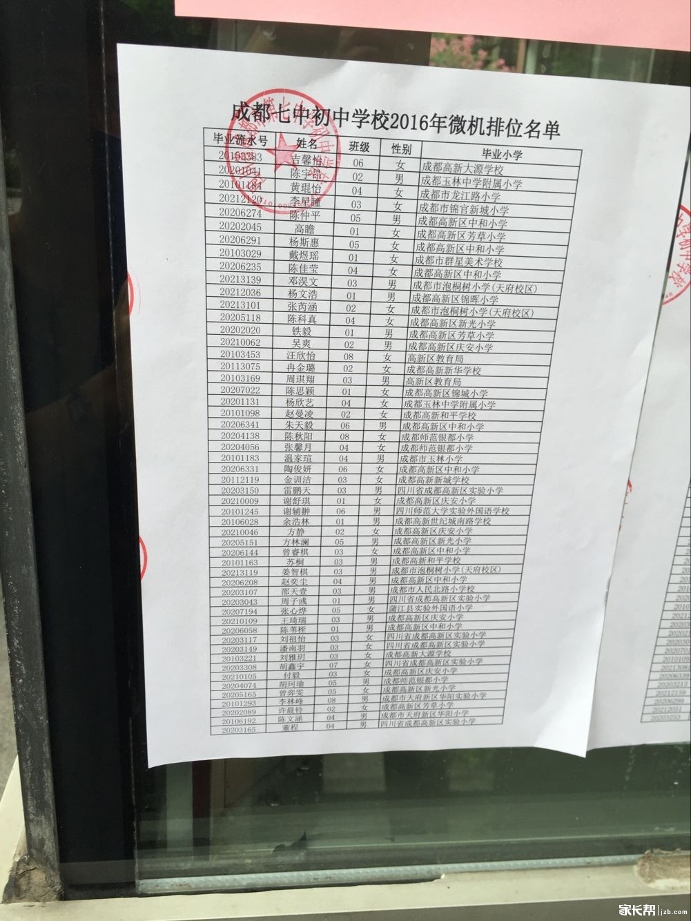 【成都七中初中2016年小升初划片派位录取名单】