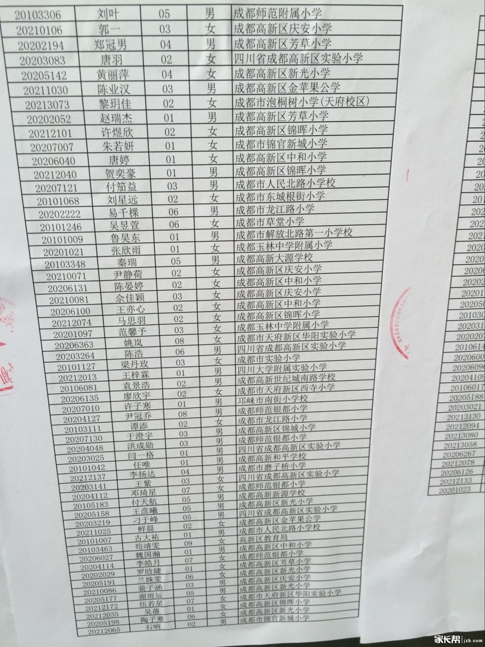 成都七中初中2016小升初划片派位录取名单(3)