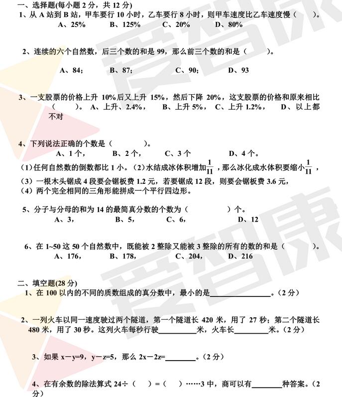 2017年成都小升初择校,孩子的水平怎么样呢?如果还不知道孩子的学习水平,那么通过下面一套小升初择校测试题来测试一下吧。