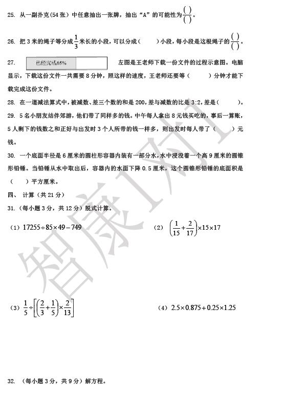 成都高新区六年级调考数学试卷(2)