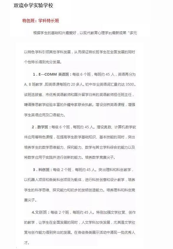 民间会有“小升初择校不如择班”的说法,所以下文为2017成都小升初择校家长们来解读一下成都双流中学实验学校的特色班们吧。
