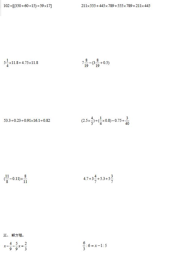 2017年成都小学六年级期末考试数学练习题(2)