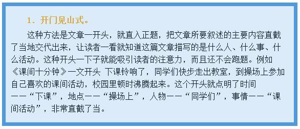 作文一直是小孩子们为难的事,开头和结尾更是如此。本来40分钟就可以完成的作文,布置成为小孩子们的家庭作业,小孩子们往往要写上一两个小时,而且还是挤牙膏似的,一点一点的逼出来的。马上就要期末考试了,作文在语文试卷中占了很大的一个部分。除开一年级的写一句话,二年级的看图写话,三年级以上的孩子都面临着写作文的难题。