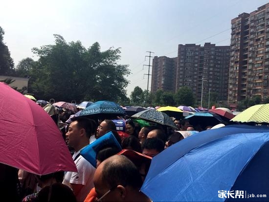 成都外国语学校2016年本地生小升初测评当天的校门口,人山人海