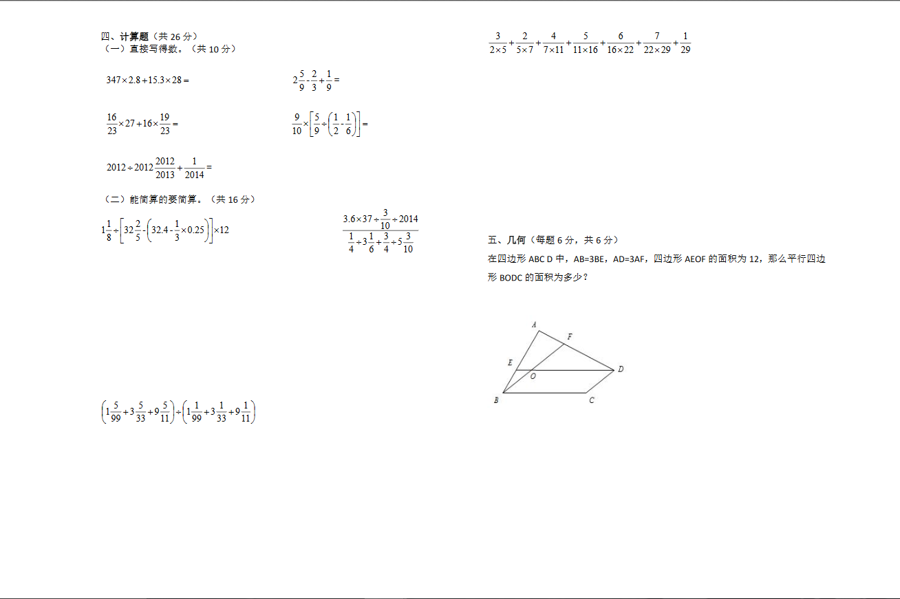 2017成都外国语学校小升初模拟考数学试卷(2)