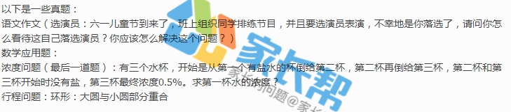 2017年成都嘉祥外国语锦江校区小升初外地生面试真题