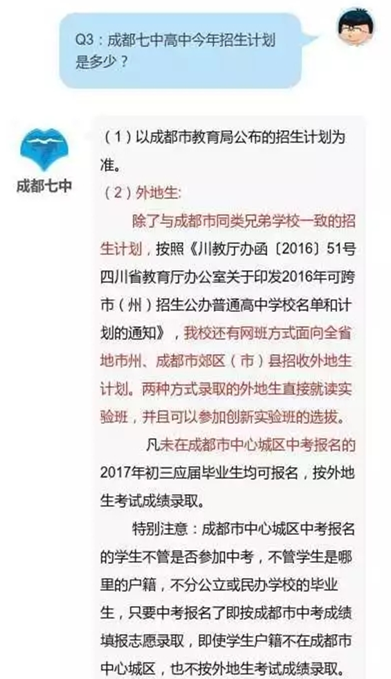 2017成都七中发布小升初招生咨询答考生及家长问(2)