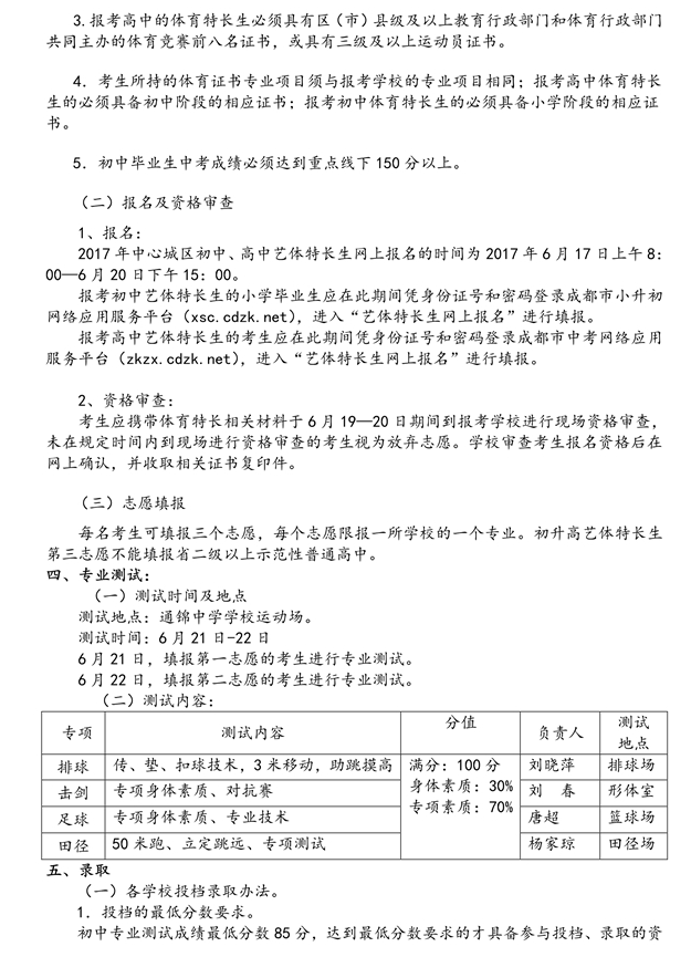 2017年成都通锦中学初、高中艺体特长生招生方案(2)