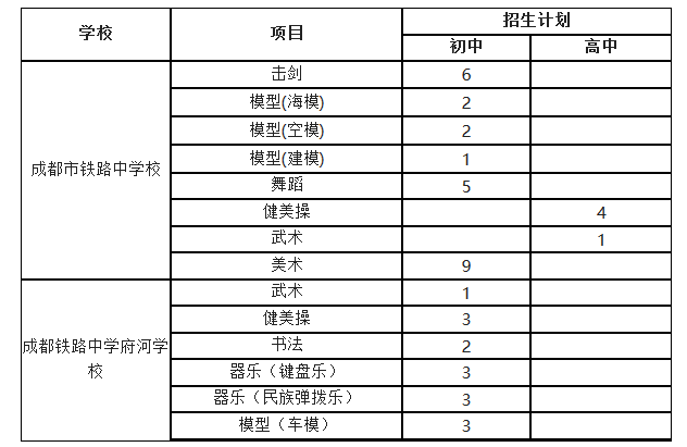 2017年成都铁路中学校初、高中艺体特长生招生方案