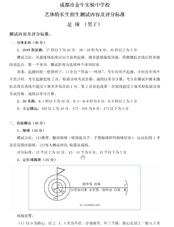 2017年成都金牛实验中学小升初艺体特长生测试内容