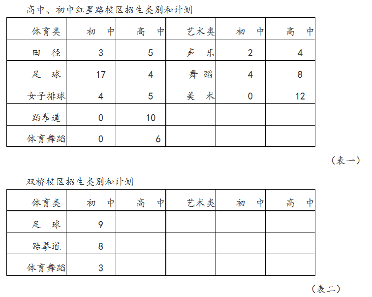 1.报考初中艺体特长生的学生必须是应届小学毕业生,且具有中心城区户籍(或是已在中心城区就读的符合条件的进城务工人员随迁子女)。报考高中艺体特长生的考生必须具有中心城区户籍并参加中心城区中考。