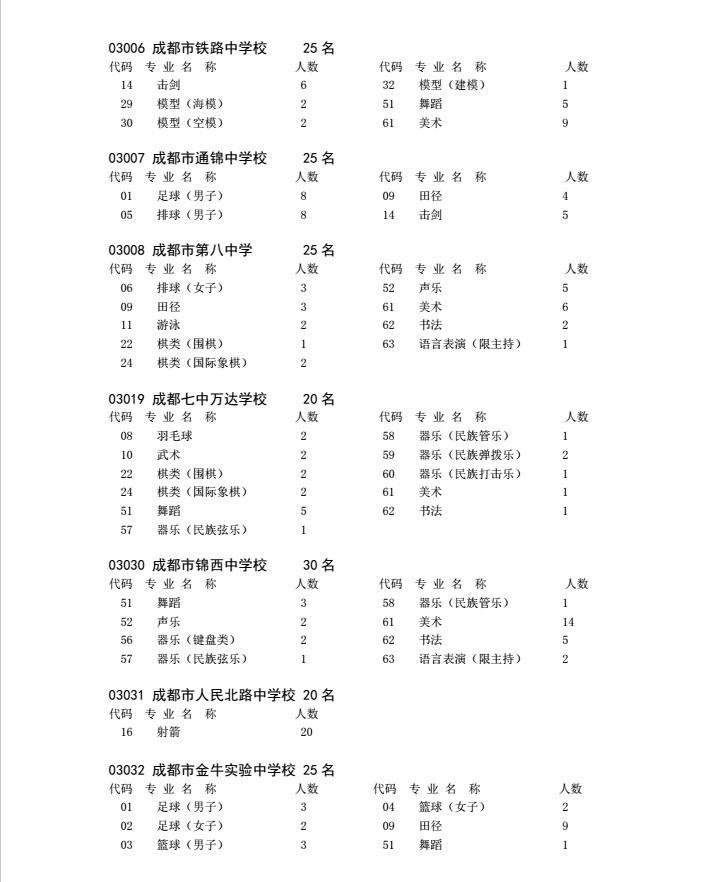 2017成都中心城区区属初中小升初艺体特长生招生计划(5)