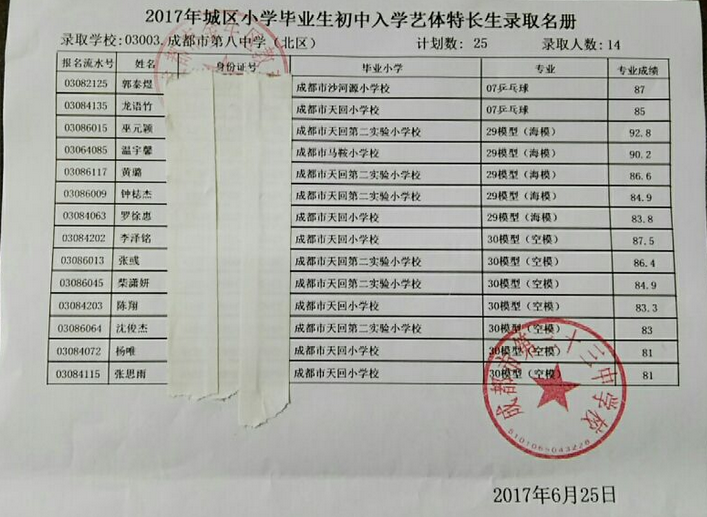 下面是2017年成都33中小升初艺体特长生招生录取名单,欢迎大家查看!