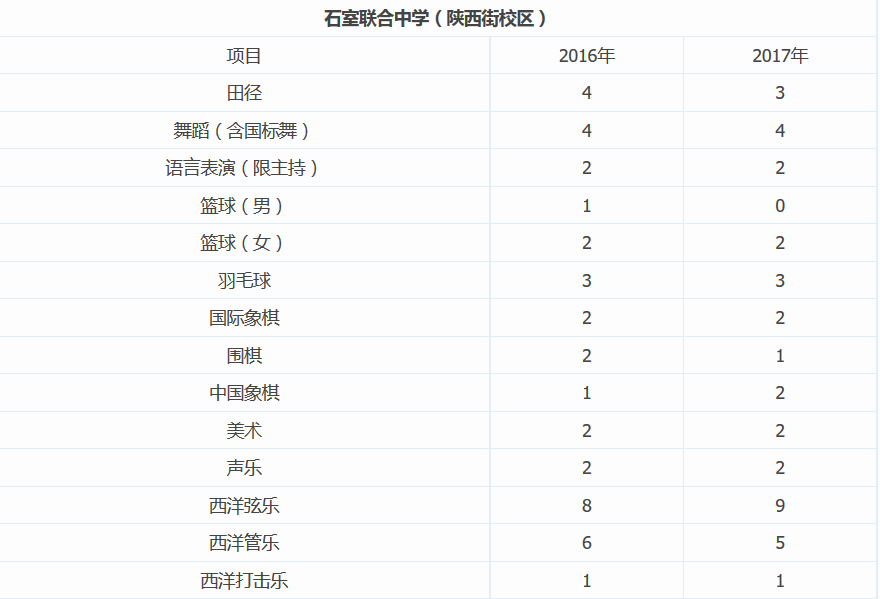 回到这个话题,我们必须先来看看成都最顶尖的几所公办学校在最近两年的艺体特长生招生数据。