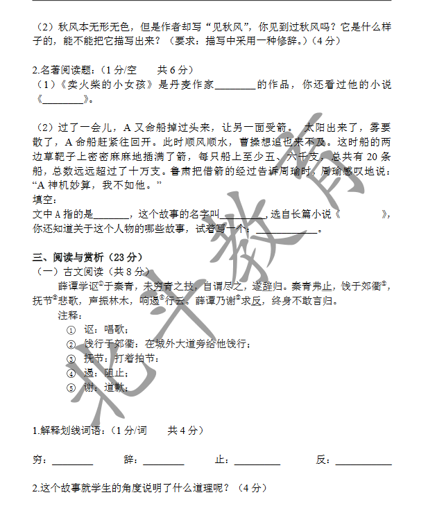 2015年成都七中小升初分班考试语文真题(3)