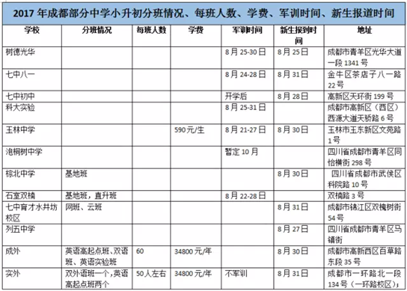 什么是分班考试?成都小升初分班考试都考些啥?(3) 成都家长帮 2017-08-31 13:52:44 文章最后,附上小编辛苦整理的2017年成都部分中学小升初分班情况、每班人数、学费、军训时间、新生报到时间等信息供网友们参考。 首页 上一页 下一页 尾页