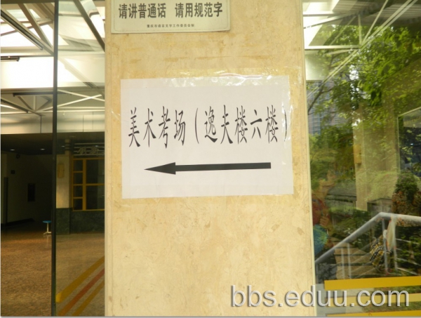 舞蹈和美术的考场都比较封闭,不能够知道里面的具体操作。 中午11点过,其他项目都开始通知下午复赛的名单了,美术的考试仍然在进行,画画不容易呀,一进去就得几个小时。不过美术就只考这一次,不分初试复试,所以坚持下喽!小编看到考舞蹈的有从其他学校来继续考的,美术就不行了,必须只能选择一所学校考了。