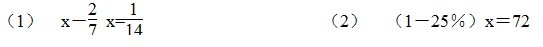 (2)比某数的20%少0.4的数是7.2,求某数。(用方程解)