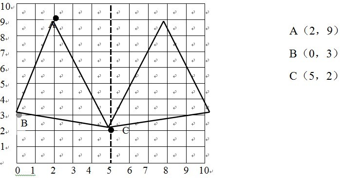 2.描出下列各点并依次连成封闭图形,再根据对称轴画出它的轴对称图形。(5分)