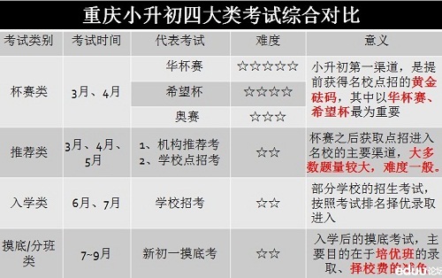 三、重庆小升初的各类考试与杯赛类考试的关系、对比