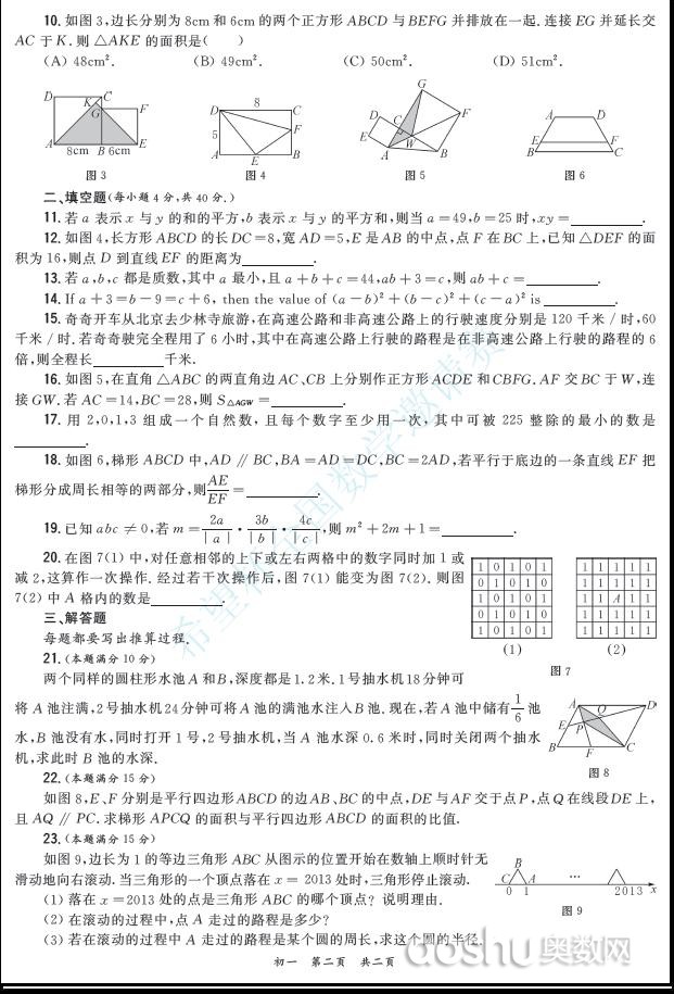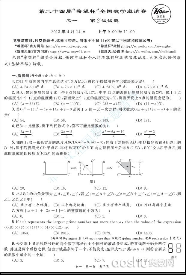 重庆奥数网10月11日:2013希望杯复赛初一年级组试题及答案已经公布,下面是重庆奥数网编辑整理的2013希望杯复赛初一年级组考试试题及答案解析。