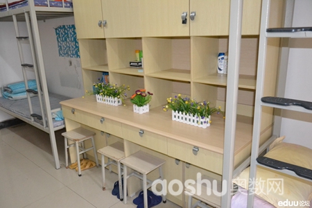 八人间,上下床,一边一张大书桌,一张书桌陪四个凳子,四个抽屉,四个小书橱,四个柜子,有独立阳台和卫生间及洗漱的地方,有空调。(>>点击查看更多宏帆宿舍情况)