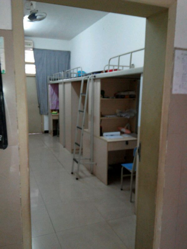宿舍是上床下桌的格局,看到每个孩子的桌上都有台灯,在寝室也可以学习。