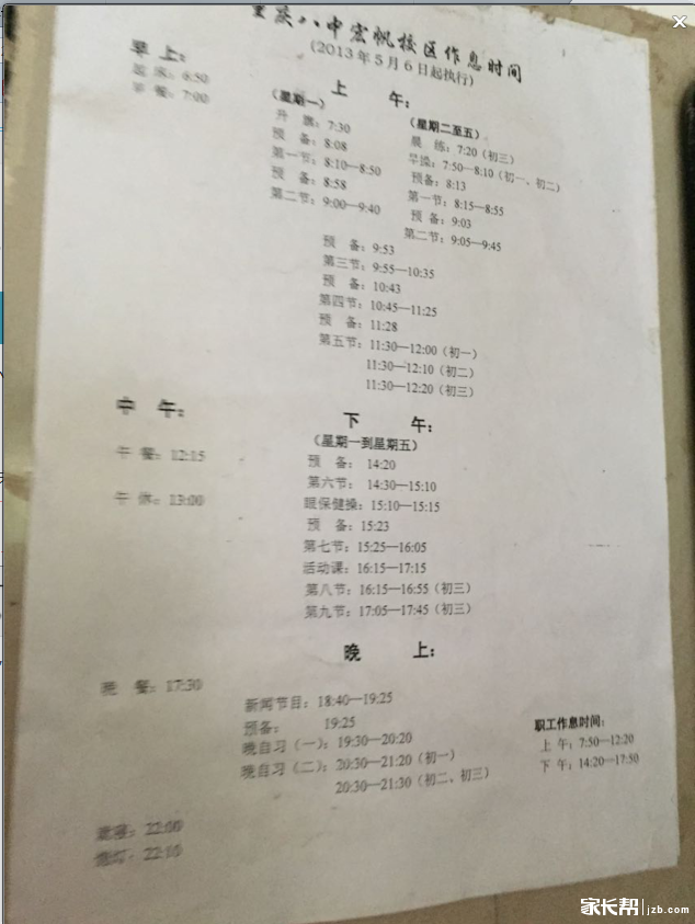 宿舍的管理是非常严格的,没有事情不可以随便中途回到宿舍区。分享一张作息时间:
