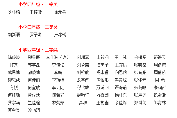 【四年级获奖名单】