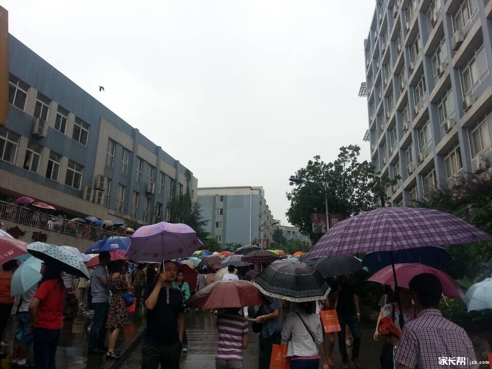 下雨了,家长在雨中等候
