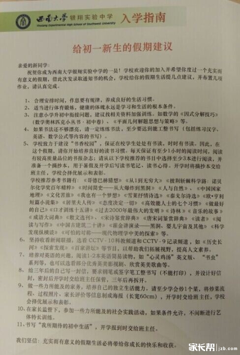 2015重庆小升初娃进入暑假啦,第一个没有作业的暑假价格如何度过呢?且看下文重庆西大附中给2015年新初一孩子的假期建议。