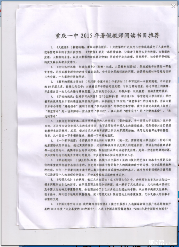 重庆一中给老师们布置的2015年暑假作业