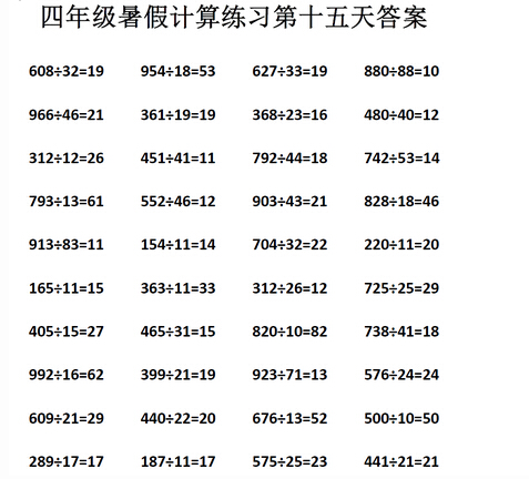 暑假重庆四年级计算练习第十五天试题答案(2)