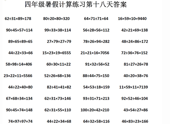 暑假重庆四年级计算练习第十八天试题答案(2)