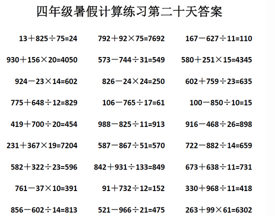 暑假重庆四年级计算练习第二十天试题答案(2)