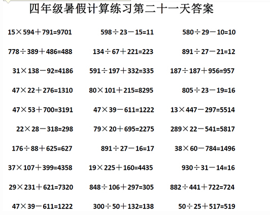 暑假重庆四年级计算练习第二十一天试题答案(2)