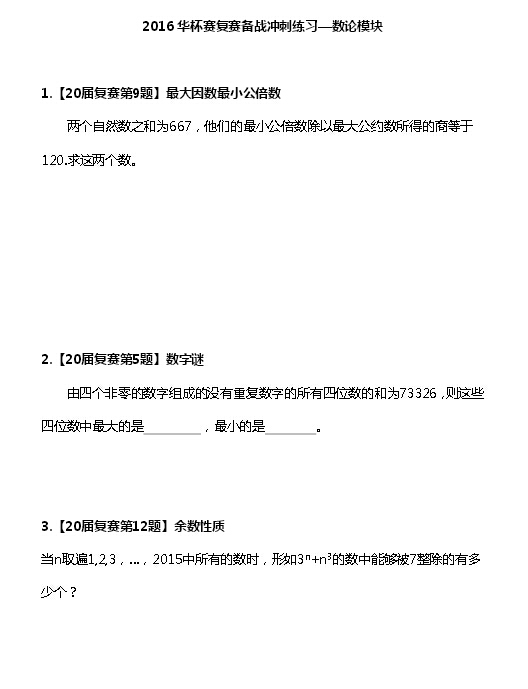 2016年第二十一届华杯赛决赛即将在3月12日开考,为了帮助重庆赛区华杯赛决赛考生做好冲刺复习,下面分享一下华杯赛决赛典型数论练习题及答案,供参考。