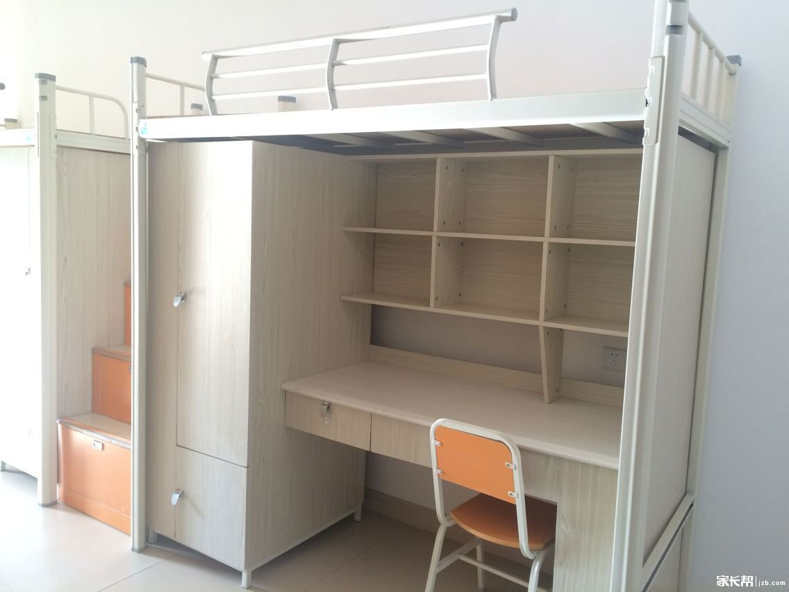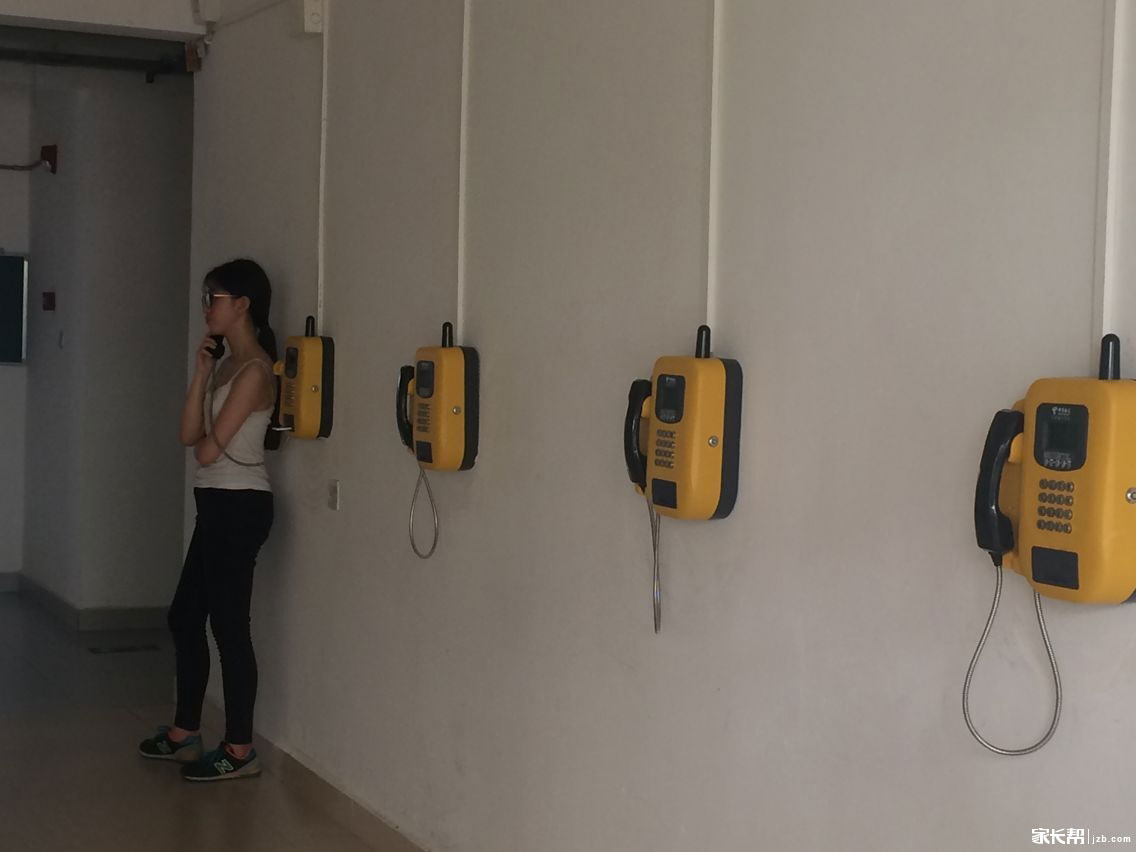 银翔校区的寝室共有三栋。一走进大厅,右边是一排插卡电话,原来,银翔校区平时要求学生手机通通上交,与家人联系都是通过宿舍门口的几部插卡电话,以免影响学习。走进宿舍内部,均为四人间,上面是床,下面有书柜书桌,洗手间在阳台上,满贴了墙砖,跟家里差不多的装潢,阳台上还有洗手台、毛巾挂杆以及晾衣杆。我们发现有几个阳台上堆了红砖,一问,才知道这是张校长正在整改的内容,因为他看到每个寝室只有一个台盆,觉得四个同学洗漱不太方面,准备改成1.2米宽的洗手池配双龙头,同时,他感觉阳台栏杆高度不够,如果加装防盗网,消防不过关,为了兼顾安全和消防,正在安装隐形纱窗。