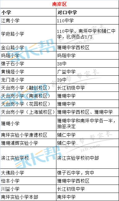 重庆南岸区2017小升初对口中学汇总