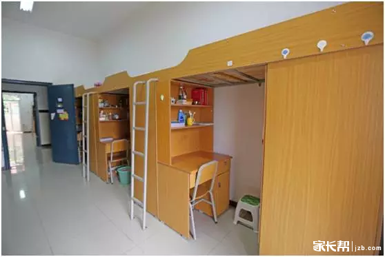 学生公寓为6人间,下面是桌子,上面是床铺,有单独卫生间,热水器、洗衣池等,住宿费是每学期450元;(另有2人间,优先满足高三学生)。