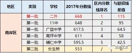 2017年高考,二外共654人参考,其中重本上线363人,重本上线率55.5%;1人考取重庆市文科第10名,文理科均获南岸区第一名;21人被世界前50强大学录取;