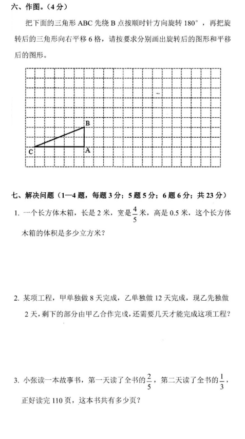 2017-2018重庆巴南区六年级上期中数学试题(4)