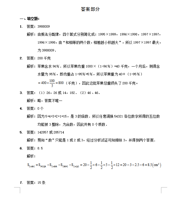 2017-2018重庆小学六年级期末考试数学模拟答案(二) 重庆家长帮 2018-01-12 14:04:03 2017-2018重庆小学六年级期末考试数学模拟答案(二) >>点击查看试题 首页 上一页 下一页 尾页