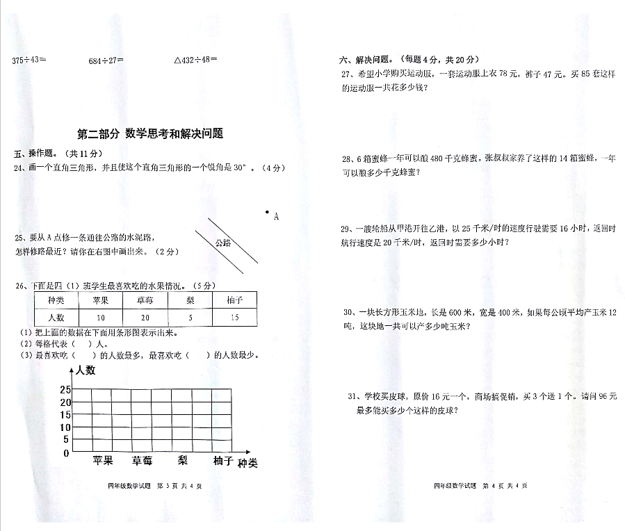2017-2018重庆南岸区四年级上期末考试数学试题(2)