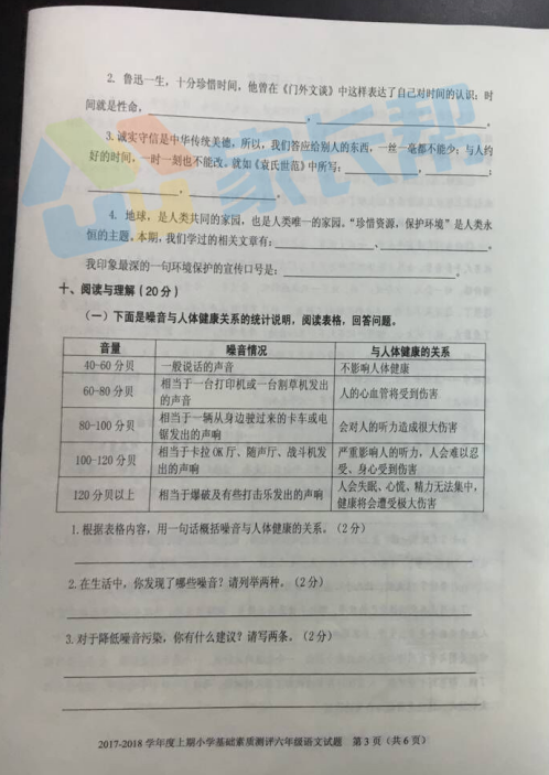 2017-2018重庆大渡口区六年级上期末考试语文试题(3)