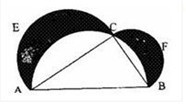 如下图,在以AB为直径的半圆上取一点C,分别以AC和BC为直径在△ABC外作半圆AEC和BFC.当C点在什么位置时,图中两个弯月型(阴影部分)AEC和BFC的面积和最大。
