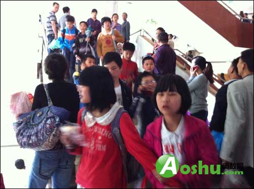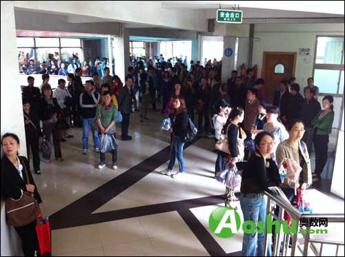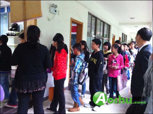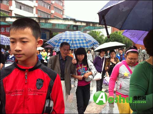 在11:10分左右,家长开始陆续站在楼梯走道前等候孩子。而在11:40考试结束后,孩子录取从考场走出来。