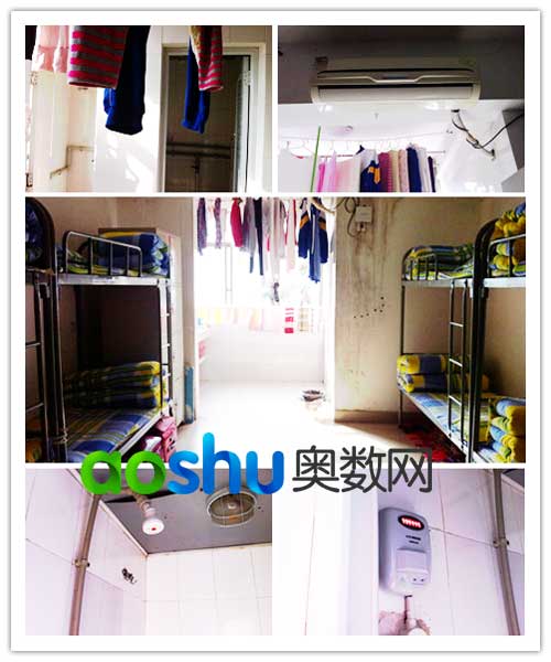 学生公寓是8人/每间。每个房间都配备了冷暖空调(学校根据气温统一开关)、程控电话和双卫生间,提供了24小时热水服务和生活指导老师、保健医生“全天侯保姆式”服务。公寓每层都配备了2台饮水机。