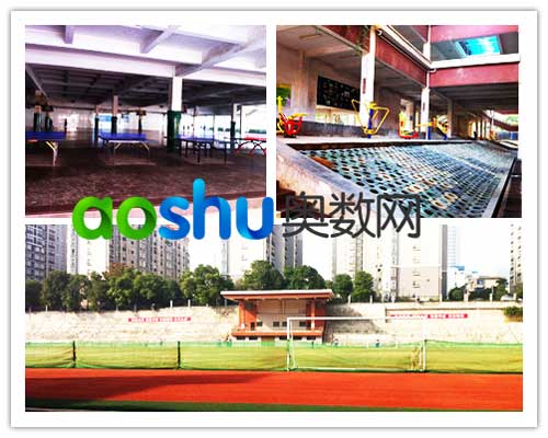 左上:篮球场、乒乓球台 右上:运动设备 下:田径场