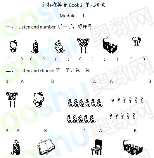长沙小学一年级英语Book2单元测试题。
